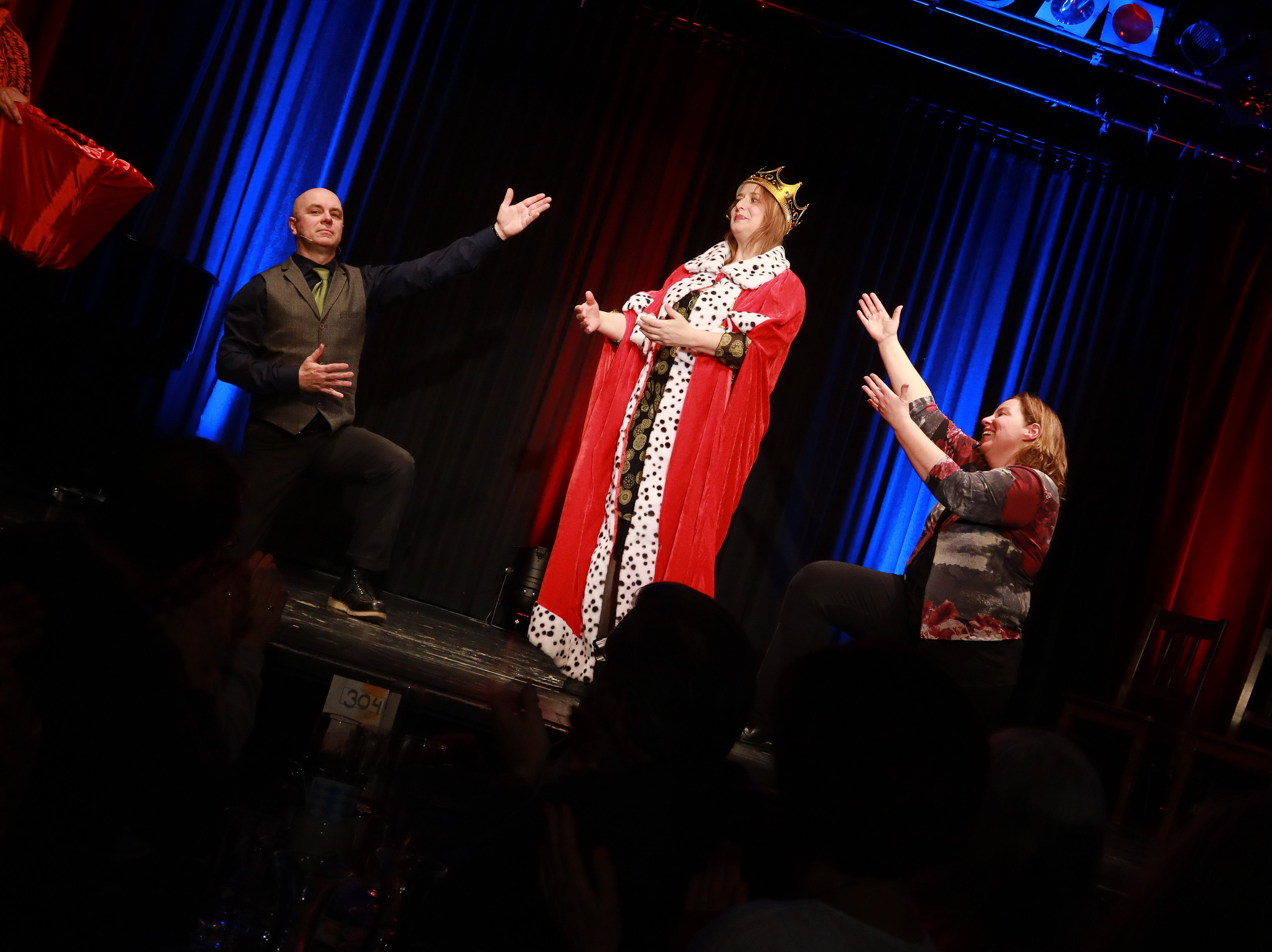 Darüber entscheidet das Publikum, wenn es mitfiebert, mitlacht und mitbestimmt, was gespielt wird und wieviele Punkte an die Spieler:innen verteilt werden. So wird der Impro-Champions-Cup zu einem aufregenden und lebendigen Theaterereignis, wenn die Beteiligten auf der Bühne immer wieder neue Challenges bekommen - und Zufall vor Gerechtigkeit geht. Humorvolle, spontane Szenen wechseln sich mit Publikumsaktivität ab: gemeinsam lachen und durch Applaus den Sieger des Abends küren. Die Spieler:innen spielen ganz aus dem Moment heraus und beglücken mit ihren überraschenden Geschichten das Publikum.